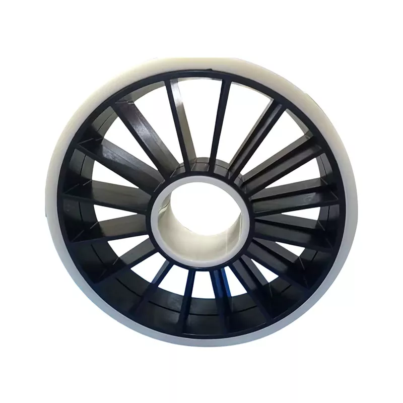 تتميز البكرة الأساسية المكونة من ثلاثة أجزاء خارجية وعشرة ABS بهيكل مصمم ببراعة، ويتوافق بدقة مع القطر الداخلي 3 بوصة (حوالي 76.2 مم) مع القطر الخارجي 10 بوصة (254 مم تقريبًا). يعمل القطر الداخلي بمثابة هيكل دعم للملف، مع التحكم الدقيق في تفاوت الأبعاد ضمن ±0.05 مم. تضمن هذه الدقة توترًا موحدًا أثناء لف فاصل بطارية الليثيوم، مما يمنع التجاعيد أو الكسور بشكل فعال. يعمل القطر الخارجي الموسع على تعزيز قدرة الحمولة بشكل كبير - خاصة في تطبيقات تخزين الطاقة، حيث تعمل كل زيادة بمقدار 1 بوصة في القطر الخارجي على تعزيز طول الفاصل أحادي الأسطوانة بنسبة 15% تقريبًا. كما تم أيضًا تحسين سُمك الجدار ليصل إلى 5-7 مم، وهو ما يمثل انخفاضًا بمقدار 1 مم عن التصميمات التقليدية.